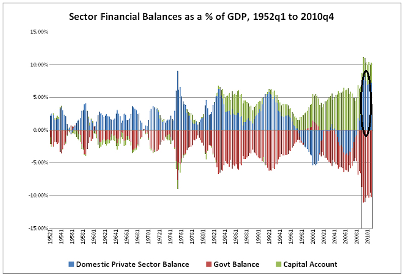 The Secret of a Deficit Without Tears [6]Second Warning By the early 1960s, Jacques Rueff was not alone in speaking out against the American privilege embedded in the monetary system. Another Frenchman named Valéry Giscard d'Estaing, who was the French Finance Minister under Charles de Gaulle and would later become President himself, coined the term "exorbitant privilege". [7] Even Charles de Gaulle spoke out in 1965 and you can see a short video of that speech in my post The Long Road to Freegold. But perhaps more significant than the obvious French disdain for the system was Robert Triffen, who stood before the U.S. Congress in 1960 and warned: "A fundamental reform of the international monetary system has long been overdue. Its necessity and urgency are further highlighted today by the imminent threat to the once mighty U.S. dollar."To put Triffin in the context of our previous discussion, here's what Jacques Rueff had to say about him: "Some will no doubt be surprised that in 1961, practically alone in the world, I had the audacity to call attention to the dangers inherent in the international monetary system as it existed then.And here is what Wikipedia says about Robert Triffin's Congressional testimony: "In 1960 Triffin testified before the United States Congress warning of serious flaws in the Bretton Woods system. His theory was based on observing the dollar glut, or the accumulation of the United States dollar outside of the US. Under the Bretton Woods agreement the US had pledged to convert dollars into gold, but by the early 1960s the glut had caused more dollars to be available outside the US than gold was in its Treasury. As a result the US had to run deficits on the current account of the balance of payments to supply the world with dollar reserves that kept liquidity for their increased wealth. However, running the deficit on the current account of the balance of payments in the long term would erode confidence in the dollar. He predicted the result that the system would not maintain both liquidity and confidence, a theory later to be known as the Triffin dilemma. It was largely ignored until 1971, when his hypothesis became reality, forcing US President Richard Nixon to halt convertibility of the United States dollar into gold, an event with consequences known as the Nixon Shock. It effectively ended the Bretton Woods System." [8](For more on the Triffin dilemma, please see my posts Dilemma and Dilemma 2 – Homeless Dollars. And for a glimpse at what I view as an even more fundamental dilemma, you'll find "FOFOA's dilemma" in my post The Return to Honest Money.) As noted above, Triffin's prescription in the 1960s was at odds with Rueff and the French contingent. In fact, even today, the IMF refers to "Triffin's solution" as a sort of advertisement for its own product, the almighty SDR. [9] From the IMF website: Triffin's Solution ![]() But even though Triffin proposed something like the SDR (a proposal the IMF loves on to this day), I think that actions speak louder than words. Robert Triffin was a Belgian economist who became a U.S. citizen in 1942 after receiving his PhD from Harvard. He worked for the Federal Reserve from 1942 to 1946, the IMF from 1946 to 1948 and the precursor to the OECD from 1948 until 1951. He also taught economics at both Harvard and Yale. But in 1977 he reclaimed his Belgian citizenship, moved back to Europe, and helped develop the European Monetary System and the concept of a central bank for all of Europe which ultimately became the ECB five years after his death in 1993. Final Warning With the end of the Bretton Woods monetary system in 1971, three things (besides the obvious closing of the gold window) really took hold. The first was that the U.S. began running (and expanding) a blatant trade deficit. It went back and forth a couple of times before it really took hold, but starting in 1976 we have run a deficit every year since. [10] The second thing that took hold was something FOA called "credibility inflation". You can read more about it in my aptly-titled post, Credibility Inflation. This phenomenon, at least in part, helped grow the overall level of trade between the U.S. and the rest of the world in both nominal and real terms. In inflation adjusted terms, U.S. trade with the rest of the world is up almost eightfold since 1971. [11] The third thing was that the U.S. federal government began expanding itself in both nominal and real terms by raising the federal debt ceiling and relying more heavily on U.S. Treasury debt sales. From Credibility Inflation (quoting Bill Buckler): Way back in March 1971, four months before Nixon closed the Gold window, the "permanent" U.S. debt ceiling had been frozen at $400 Billion. By late 1982, U.S. funded debt had tripled to about $1.25 TRILLION. But the "permanent" debt ceiling still stood at $400 Billion. All the debt ceiling rises since 1971 had been officially designated as "temporary!" In late 1982, realizing that this charade could not be continued, The U.S. Treasury eliminated the "difference" between the "temporary" and the "permanent" debt ceiling. The way was cleared for the subsequent explosion in U.S. debt. With the U.S. being the world's "reserve currency," the way was in fact cleared for a debt explosion right around the world.Here are the debt ceilings through 2010 as found on Wikipedia: