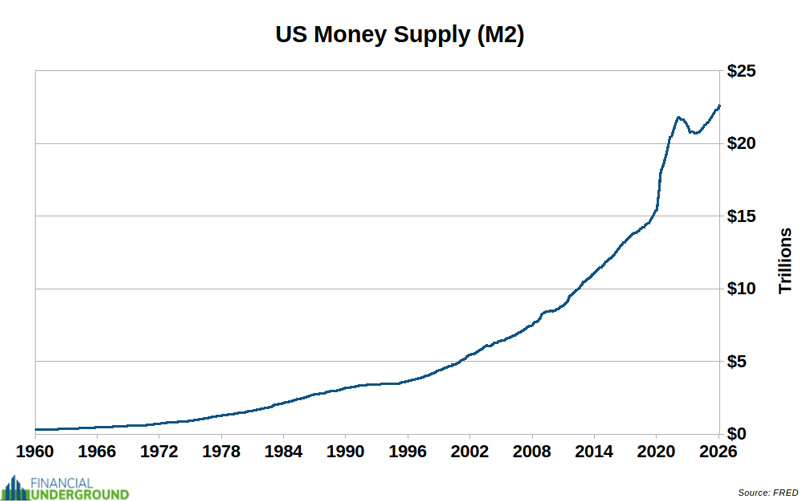 Indicator #6: Money SupplyImagine working 9 to 5 for 50 years, only for the Federal Reserve to print 40% of the money supply and inflate away 20 years of your hard work. You don’t have to imagine—it actually happened during the COVID mass psychosis, as governments worldwide indulged in a frenzy of currency debasement. I have no doubt that something like this or much worse will happen again soon.