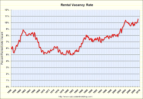 The rental vacancy rate increased to a record 10.6% in Q2 2009.