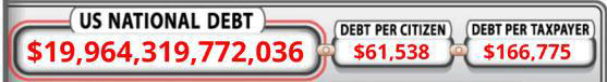 The first is $20 trillion, which is the level the US federal debt will exceed sometime around June of this year. Here’s the current total as measured by the US Debt Clock: