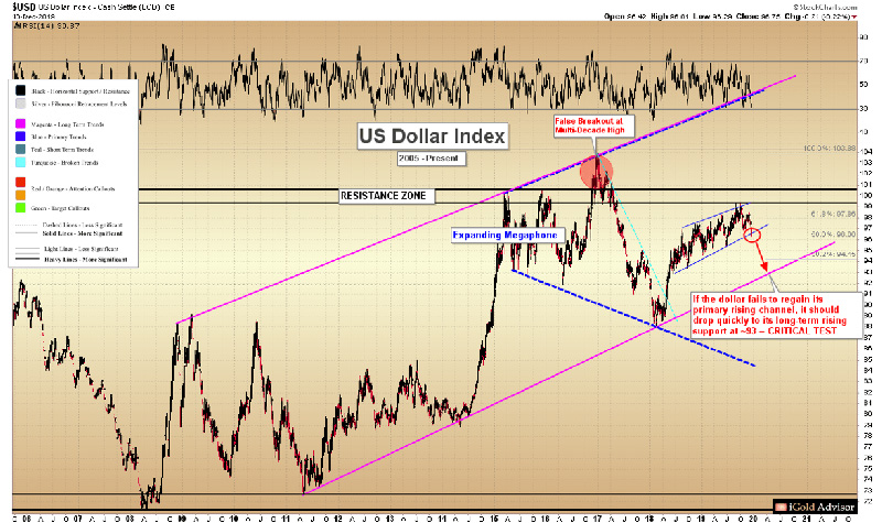 There will be plenty of time to prepare for perhaps a decade or two of dollar deterioration after we see 93.0 broken – for now, we consider it a critical test which is likely to occur within the first half of 2020, after initial weakness due first.