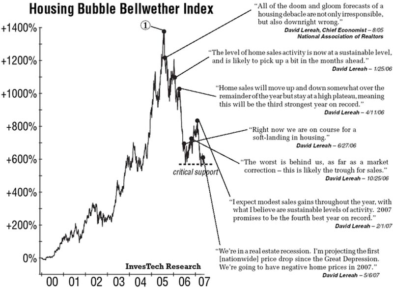 “The steady improvement in home sales will support price appreciation despite all the wild projections by academics, Wall Street analysts, and others in the media.” - David Lereah, NAR mouthpiece/economist - January 10, 2007