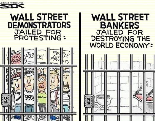 Exact equivalence; you destroy someone’s livelihood, and your livelihood shall be destroyed. Such justice would leave a lot of people, and not just bankers — Dick Cheney, John Yoo, Larry Summers, Tim Geithner — with a lot to fear. But would it work? Well, China executes bankers — as well as corrupt party leaders, (watch out, Bo Xilai) — and bankers in China keep screwing investors and the nation. I think the biggest problem with capital punishment is that it is administered by the state (or the mob) and that means that very often it is administered to the wrong people, for corrupt or flawed reasons. Putting the power of life and death in the hands of the state is quite dangerous. More likely than not, the person executed will end up being the innocent junior intern (“take one for the team, buddy!”) while the corrupt CEO enjoys a retirement of golf courses, hookers, viagra, and oxycontin. A much better goal to aspire to is the end of bailouts, and the end of firing off wads of QE-dollars to preserve badly-run (but well-connected) companies and systems (zombification). Still, in matters of financial fraud I think it is important to seek out equivalent justice; you destroy a livelihood, we take your trust fund, and your Swiss bank account to compensate the victim. The status quo — where regulators shoot off tiny fines for huge financial crimes — is a joke. But the best way to punish Goldman Sachs (etc) for their misdeeds is to not bail them out the next time their hyper-fragile leverage-driven business model fails them and they end up over a barrel. It is quick, dirty and emotionally satisfying to talk of executions, but giving the state the power over life and death has far bigger, and far more dangerous consequences, not to mention huge potential for abuse. |