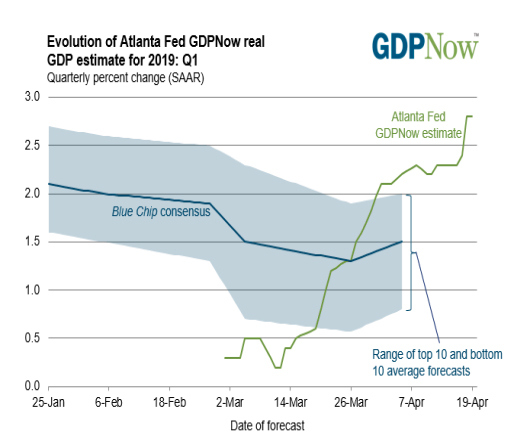 Were this not a holiday, I might be tempted to stoop to the profane. We have some company in the Grain Complex, where Corn and Wheat remain on offer, but can only look on in wrathful envy as investors bid up our bovine and porcine equivalents to multi-year highs. But as this is the biblical season for law-giving, redemption and even resurrection (as will happen on rare and seemingly random occasions, Good Friday was the first night of Passover this year, which transpired on the Shabbat, to boot), I suggest we move on to more uplifting themes. The overall market was quiet this week, eerily so, in part because the triple whammy holiday shortened it to four sessions. Of course, earnings season is revving up, and so far there are hits and misses in that realm. But with 15% of the precincts having reported, there’s very little clarity on the trajectory of Corporate America’s fortunes. A boat load of firms will report this week, and it will be an interesting cycle, with numbers dropping from such Walrus wannabes as Facebook, Microsoft and Amazon. My sense is that we’ll get a much better picture about condition of domestic commercial universe during this cycle, and, again, I’d pay particularly close attention to guidance for the back half of the year. Macro data has been, as expected, a mixed basket, with some of those plastic egg shells containing cold hard cash, and others nothing better than a licorice jelly bean. But a couple of the numbers, most notably the blowout in Retail Sales (+1.6% vs. +1.0% estimate, and particular shout outs to autos, gasoline, furniture, consumer electronics and even restaurants – but sadly, not eggs) were a particular delight. And, in consequence, the Fed’s Q1 GDP estimates have transformed from a carpet bomb into a moonshot: