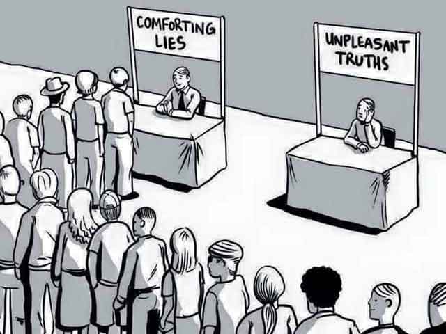 The reality of the situation for the masses is far worse than they realize, but even when they are told what is happening, they refuse to believe the truth. Their cognitive dissonance and normalcy bias have been ingrained in their psyches by those constituting the invisible government, who know how to manipulate their minds through psychological techniques and perpetual propaganda. Believing comforting lies from their leaders is preferable to recognizing unpleasant truths which would require them to think, speak out, take action, and risk being ostracized, punished, and alone.