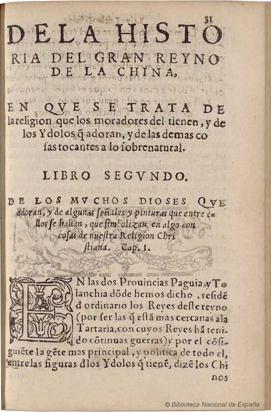 Literature interchange 1586 The Augustinian friar, Juan Gonzalez de Mendoza, wrote one of the earliest Western histories of China, Historia de las cosas más notables, ritos y costumbres del gran reyno de la China(The History of the Great and Mighty Kingdom of China and the Situation Thereof). Two years after it was published in Barcelona, the book was translated into English by Robert Parker