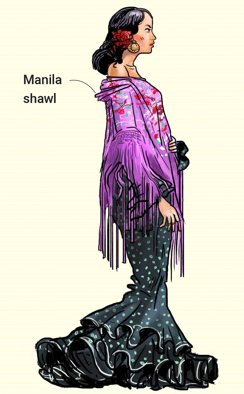 Dutch 17th-century still-life painting by Jan Jansz. Treck, showing late Ming blue and white porcelain export bowls, 1649 Also this porcelain had a huge influence on the local artisans in Mexico, who took the Chinese blue and white characteristics and translated it with their own styles and designs. An example is the porcelain from Puebla The Manila shawl Chinese fabrics were highly prized. Among the many textile products that came to the Americas and Europe was a square cloth made from silk and finely embroidered. The shawl was folded in half like a triangle and worn over women’s shoulders. This shawl became known as the manton de Manila, although it was produced in Canton not the Philippines The shawls became very popular in Spain and Spanish America. Over the years they became fashionable throughout Europe, especially in 19th century Paris. Manila shawls are still popular today and are considered to be an integral part of Spanish culture, having even been incorporated into flamenco, the quintessential Spanish art-form ![]() Currently this garment of Cantonese origin is a must-have for flamenco dancers This shawls became very popular in Spain and Spanish America. Over the years they became fashionable throughout Europe especially in nineteenth century Paris. Their popularity is such that today, Manila shawls are considered an integral part of Spanish culture and continues to be worn.