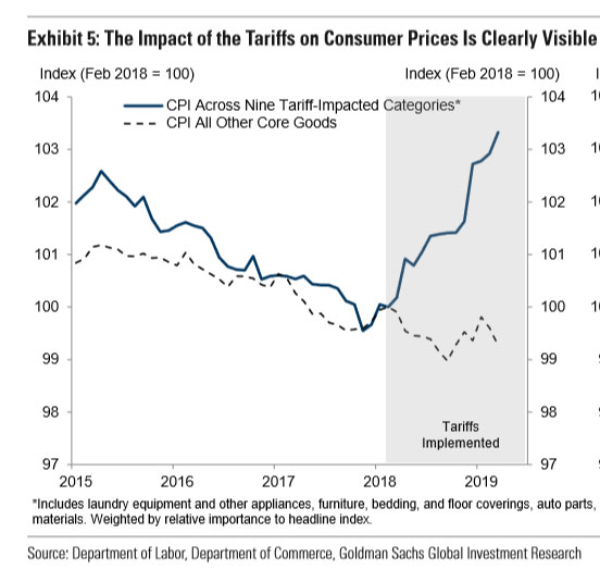 These tariffs are likely hitting consumers in their wallets too. According to a Goldman Sachs chart shared on CNBC, nine consumer categories were hit particularly hard by increased tariffs: If China and the U.S. don’t reach a trade agreement soon, which doesn’t appear likely, the ongoing trade war could provide a knockout punch to the economy by itself. But that’s not the only punch the economy is taking, as Fed Chairman Powell may also provide a potential monetary policy “haymaker.” Fed Monetary Policies May Trigger Even More Trouble According to May 2019 FOMC meeting minutes, the Fed still has rose-colored glasses on when it comes to reporting inflation, sticking to its “symmetric rate” philosophy (emphasis ours):
