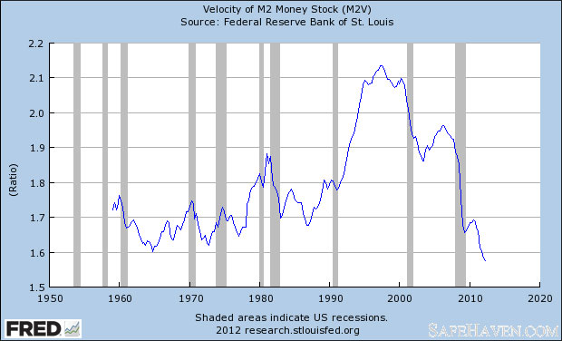 the face of DEBAUCHING the currency as Keynes speaks about... The SECOND chart is a fifty year look of M2 velocity of