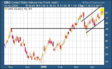 We may have pulled the trigger a bit too fast on UNG. Natural gas has continued to climb. Good profits were booked, but it looks as though we left some money on the table. Time will tell.