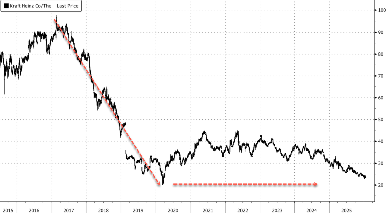 Bloomberg noted, "After years of underperformance, Kraft Heinz announced in September that it would separate into two public companies, essentially undoing its $46 billion mega-merger from a decade ago. Its chairman has blamed the company's poor performance on an overly complex corporate structure and the inability to focus on capital allocation and the right projects to prioritize. Kraft Heinz also replaced its chief executive officer at the start of this month."