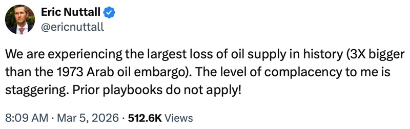“If this drags on for weeks, the ramifications are huge,” he said, pointing to early ripple effects already emerging in global energy markets.