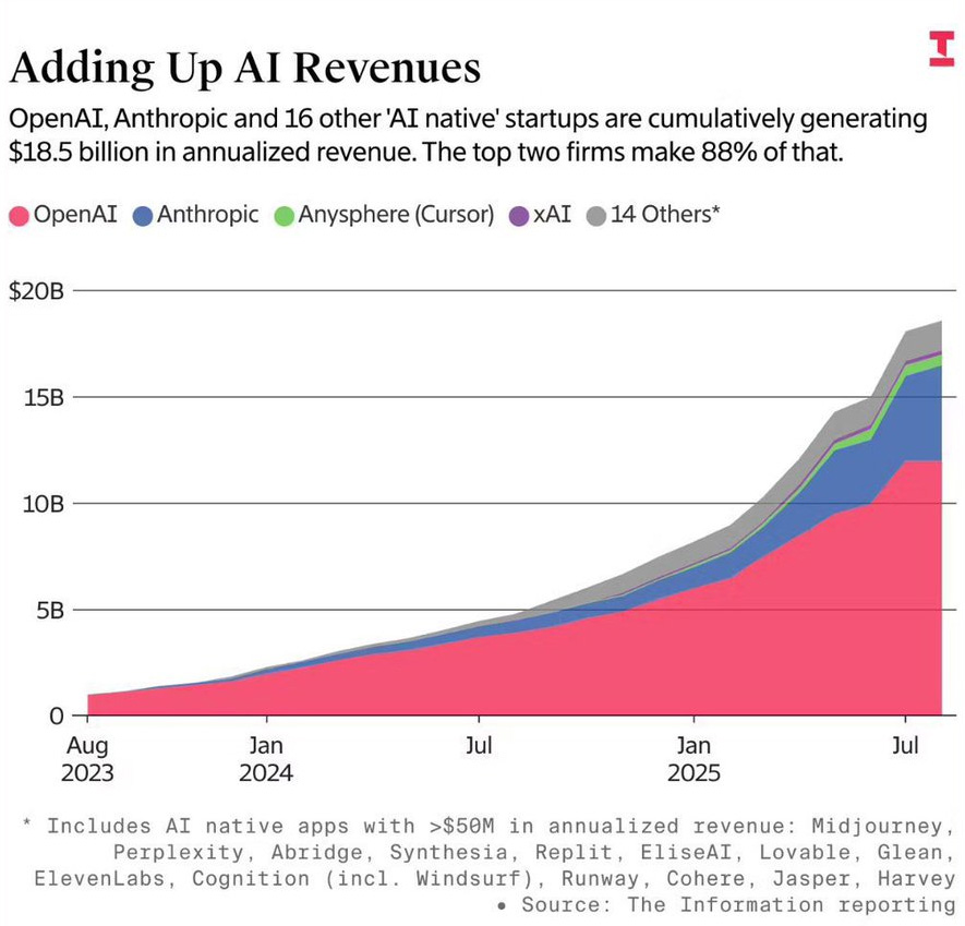 Without a course correction, the U.S. economy faces a self-inflicted bust. In the mid-2000s, Wall Street’s best and brightest were packaging subprime loans into complex securities and assuring the world they were safe. Regulators nodded. Rating agencies blessed them. Investors snapped them up. Few asked the obvious question: What if the assumptions behind these instruments are wrong? Today, a similar blind spot is spreading through the economy – not through mortgages, but through artificial intelligence (AI). Everyone from Big Tech giants to startup founders, institutional investors, and Washington policymakers is convinced that artificial intelligence is a revolutionary technology, and that big capital expenditures (capex) today will lead to countless industrywide profits in the future. But there’s a problem: Demand in value-added, real-world applications is unlikely to be large enough to justify all this investment. The demand that AI promoters constantly highlight is drawn from Large language model (LLM) training sessions and queries – neither of which is associated with much sustainable, real-world revenue. Much of the revenue being booked in this ecosystem ultimately comes from a limited pool of venture capital (VC) funds. A recent story from The Information estimated that these LLM companies generate roughly $18.5 billion in annualized revenue. Ironically, The Information was trying to rebut the claims from an MIT Media Lab report that concluded 95% of businesses are seeing no return on AI pilot projects. It’s ironic because $18.5 billion in annualized revenue is peanuts relative to the astonishingly large amount of capital poured into these companies. The revenue streams in the chart above are also not very valuable because LLM companies are not showing positive operating leverage. Plenty of evidence indicates that costs scale alongside revenue at LLM companies. Heavy users burn lots of electricity and shorten Nvidia chips’ lives in their usage of the models. And free users will just switch to a competing LLM if ever required to pay a subscription fee. From Groupthink to Boom-Bust Today’s AI investment mania has two key blind spots: the fallacy of composition and adverse selection. Let’s break those down. The fallacy of composition is the mistaken belief that what’s true for one player is true for all. If one company like Microsoft makes money selling AI products, then investors assume the entire AI sector will do the same. But that’s not how competitive markets work. In fact, success in a competitive market often comes at the expense of rivals. There can be winners, but not everyone can win. This fallacy infected the telecom boom of the late 1990s. Just because one broadband provider had profitable demand didn’t mean every fiber-optic network was worth building. Billions were spent laying cables that no one would use for another decade. Then there’s adverse selection. In insurance, this happens when sick people are more likely to buy health insurance than healthy people, leading to losses for the insurer that doesn’t attract enough healthy customers. In AI, something similar is unfolding: the heaviest users of AI chatbots and tools – those demanding the most computing resources – are often not paying enough in subscription fees to cover their costs to the LLM provider. The casual users, who make up the vast majority, may never convert to paying customers. This undermines the very business model these companies are betting on. What happens when the market discovers this? You get a doom loop: companies overspend on infrastructure, hoping for future demand that never materializes, while investors keep piling in – until someone finally notices the emperor is minimally clothed. Why Small Businesses, Not Big Tech, May Be the Real Winners There’s a popular narrative that the so-called “Magnificent 7” (Microsoft, Google, Apple, Amazon, Meta, Nvidia, and Tesla) will capture most of the economic value created by AI. But history suggests otherwise. In past tech revolutions, the biggest winners weren’t always the biggest companies. The advent of the internet helped millions of small and mid-sized businesses gain customers and compete globally. Low-cost e-commerce tools like Shopify and advertising platforms like Google and Facebook gave them the reach they never had before. Similarly, it’s possible that AI’s biggest beneficiaries won’t be the firms building the models, but the dentists, restaurant owners, and local manufacturers who use those tools to accelerate mundane processes and serve customers better. The irony? While these SMBs (small- and medium-sized businesses) benefit, the AI platforms enabling them may struggle to get paid. If Google’s new Veo video model helps a dentist craft a great local ad, will that dentist pay Google more? The Myth of Lock-In and the Illusion of Pricing PowerOne of the most dangerous assumptions in AI capex is that these platforms will enjoy pricing power – meaning they can charge enough to cover their costs and then some. But look closely, and this assumption crumbles. The AI chatbot market looks a lot like perfect competition, a textbook term for markets where many providers offer nearly identical products, and prices fall toward the cost of production. Unlike the broadband boom of the 2000s, where companies had to rip up streets to lay wires and customers had few broadband alternatives, switching from one AI model to another takes a few clicks. If you’re a free user of ChatGPT, and it suddenly costs $20 a month to use it at all, but Claude or Gemini is free and just as good, nothing is stopping you from switching. That’s the nightmare scenario for the AI providers: they’ve built massive infrastructure assuming recurring subscription revenue, but the customer base may have no loyalty and little willingness to pay. It’s like investing billions into oil wells only to find out your oil sells for $10 a