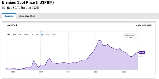 The World Nuclear Association has predicted that demand for nuclear fuel will double by 2040 as technology companies scramble for energy to support AI and governments pursue zero-carbon targets. Switzerland-based Mercuria has been increasingly investing in the metals business in recent years, using profits it raked in from high oil prices a couple of years ago. The uranium market is still small compared to commodities like oil, natural gas, copper, and aluminium, which are the forté of Mercuria, Trafigura, Glencore, and other large commodity traders. According to UxC, global utility demand for Uranium Oxide Concentrate (U3O8) clocked in at 175 million pounds in 2024, with 47 million pounds traded on the spot markets. Uranium prices have surged in recent years thanks to the global energy crisis. Citi analyst Arkady Gvorkyan has predicted that spot prices will hit $100 per pound in 2026 as miners struggle to keep up with the demand. Prices have pulled back from the all-time high of $106 reached in February 2024. Source: Y-Charts The uranium market is experiencing a structural supply deficit, creating potential challenges for nuclear operators. Unlike many commodities, uranium trading usually involves small volumes with specialized participants, making the nuclear fuel susceptible to significant uranium market volatility. Meanwhile, governments across the globe are repositioning nuclear as critical infrastructure rather than transitional tech. These developments have forced uranium equities to re-rate sharply, with investors now recalibrating exposure to a sector long dismissed as too volatile, too political, or having an uncertain future. While uranium and nuclear stocks have pulled back from recent highs, the sector remains red-hot: the sector's popular benchmark, VanEck Uranium and Nuclear ETF (NYSEARCA:NLR) has returned 68.3% YTD, more than triple the 19.8% gain by the usually high-flying Technology Select Sector SPDR Fund (NYSEARCA:XLK), 6.4% by the Energy Select Sector SPDR Fund (NYSEARCA:XLE) and 12.5% by the S&P 500. Uranium and nuclear stocks have easily outpaced the market : shares of advanced fission power plant developer, Oklo Inc. (NYSE:OKLO), have rocketed 459.4% in the year-to-date; Centrus Energy (NYSE:LEU) 357.1%, Energy Fuels Inc. (NYSE:UUUU) 235.9.4%, NuScale Power Corp. (NYSE:SMR) 112.0%, Uranium Energy Corp. (NYSE:UEC) 98.8%, Cameco Corp. (NYSE:CCJ) 66.8%, NANO Nuclear Energy (NASDAQ:NNE) 66.6%, BWX Technologies (NYSE:BWXT) 58.9%, VistraCorp. (NYSE:VST) 47.4% and NexGen Energy (NYSE:NXE) 34.0%. Shares of California-based Oklo have been on a tear, gaining 1,340% over the past 52 weeks after the company announced a flurry of data center deals. Back in July, Oklo unveiled a partnership with Liberty Energy (NYSE:LBRT)wherein they will develop an integrated power solution for data center applications incorporating Oklo's Aurora powerhouse with Liberty's natural gas generation. The power plan will start with Liberty’s natural gas systems delivering quick energy. before shifting to Oklo’s clean nuclear generation over the long-term. Around the same time, Oklo announced a partnership with Vertiv (NYSE:VRT) that will see them join forces to revolutionize data center operations. “This agreement is about delivering clean power, energy-efficient cooling, and infrastructure solutions purpose-built for AI factories, data centers, and high-density computers,” said Oklo CEO and co-founder Jacob DeWitte. Oklo later revealed that it was selected for three of the U.S. Department of Energy’s reactor pilot projects, part of the DoE’s initiative to modernize and streamline nuclear licensing. Bank of America has downgraded Centrus' shares to Neutral from Buy but raised its price target to $285 from $210, citing valuation concerns after the huge runup. Centrus achieved the 900-kilogram production milestone of HALEU for Phase 2, and confirmed a contract extension with the DOE through June 2026. HALEU, or High-Assay Low-Enriched Uranium, is a type of nuclear fuel enriched to between 5% and 20% Uranium-235. This is a higher concentration than the low-enriched uranium (LEU) used in most current reactors (3-5%), but lower than the highly enriched uranium (HEU) used in naval reactors and weapons. HALEU is crucial for the development of advanced nuclear reactors, particularly small modular reactors (SMRs) and microreactors, due to its potential for increased efficiency, smaller reactor designs, and longer refueling intervals.