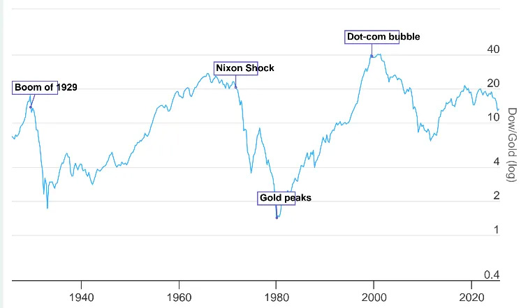 In the ‘70s, the price of an ounce went from $35 to over $800 — almost a 25x gain. To get to $9,000 today, gold would only have to go up less than three times. Or taking it from the beginning of the decade, when gold was trading around $1,700, it would still only have to go up five times to hit the $9,000 mark. Even if you were to go back 25 years, when gold was trading around $300, you’d only need a 30x increase to get to $9,000. These are easy goals. Not unimaginable ones. And a big run-up in gold already seems to be underway. The press is promoting it. Ordinary people are beginning to think about it. And Wall Street hopes to sell a lot of ‘paper gold’ to investors who are desperate to join the gold rush. But in all the hoopla, it’s easy to forget what we are really doing. Gold is not an investment; it’s a place to put your money while you wait for a good investment to come along. It’s not a wealth creator; it’s a wealth preserver. Is it the best place for your money now? We don’t know. We’re on the train already…and we’ll stay on until we reach our destination. But if we were still standing on the platform, we’d feel better about hopping on if there were more vacant seats aboard. Market Note, by Tom Dyson This chart shows the Dow/Gold ratio going back a hundred years. When stocks are expensive, we hold gold. When stocks are cheap, we hold a major stock market average, like the Dow or S&P. Simple. Functional. The most practical stock market trading system that ever existed — and a much better alternative to “buy-and-hold” index investing. Even though we’re now in the third decade of the “holding gold stage” of the strategy, stocks are still expensive. They need to fall by at least another 60% in terms of gold before we’ll arrive at the system’s next “hold stocks” signal. It’s been a long wait… but perhaps this last leg will go by faster? We’ll see. And of course, we’ll be monitoring the indicator closely in our paid newsletter.