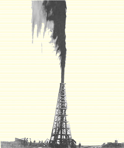 In Texas in 1899, a company was formed to drill the Spindletop field, an area known for oil and gas seeping out of the ground. Drilling was still a new science, so it took a few years to strike the oil. But once they did, oh boy… The Lucas Gusher, as it became known, spewed out around 120,000 barrels per day under high pressure. There was no need for pumps. Oil soared hundreds of feet into the sky.